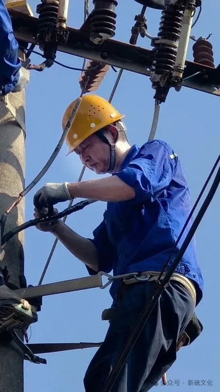 時間一分一秒過去,陽光越來越炙熱,溫度也越來越高。汗水很快浸濕了電桿上聶爾保、曹慶鑫兩名搶修電工的工裝。任憑汗珠不斷順著臉頰和衣衫滴落在地上,他們無暇顧及。兩人在高空中相互配合、快速更換令克,小心翼翼地重接即將熔斷的接頭,桿下安全監管人員凝神屏息全程注視著他們的操作。